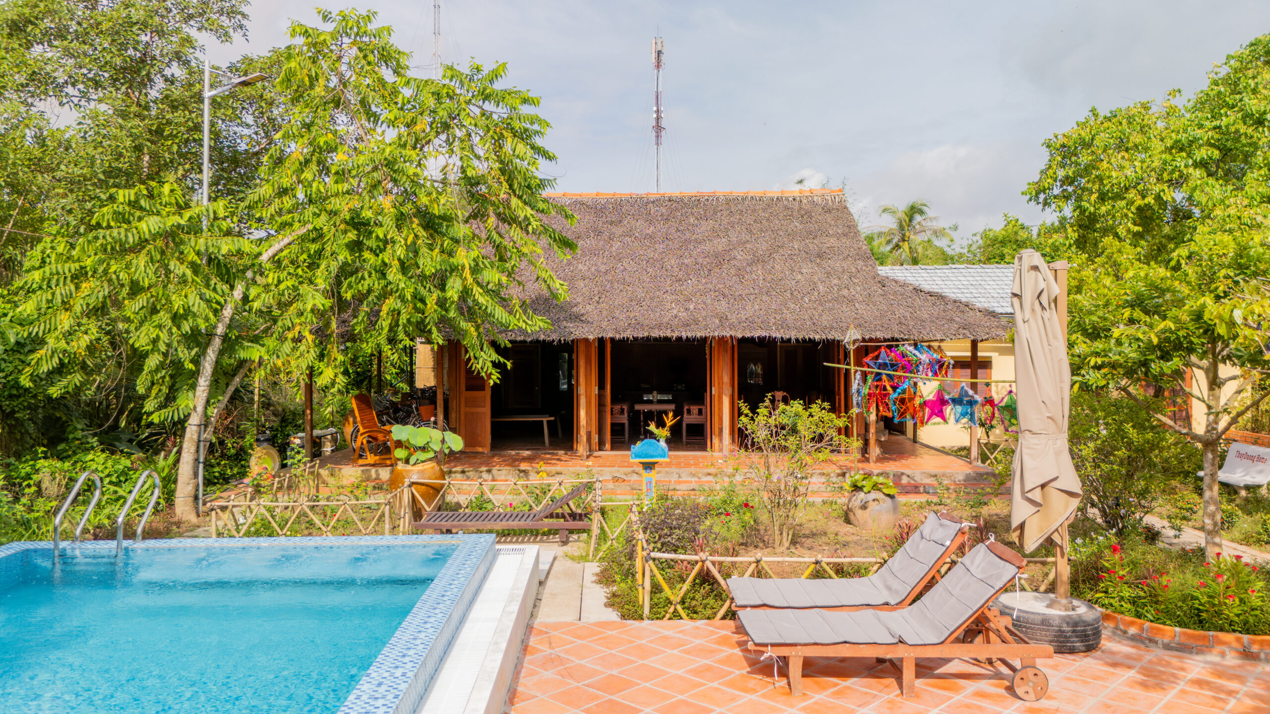Homestay Thùy Dương 1 là một điểm dừng chân yên bình, sở hữu khu vườn xanh mát và cây trái sum suê ngay bên cạnh. Bạn có thể tận hưởng hồ bơi ngoài trời, nhâm nhi cà phê trong sân nhà đầy nắng hoặc chỉ đơn giản là nghỉ ngơi trong những căn phòng tràn ngập ánh sáng tự nhiên. Với thiết kế mộc mạc nhưng đầy đủ tiện nghi, Homestay Thùy Dương là sự kết hợp hoàn hảo giữa thiên nhiên và sự thoải mái – lý tưởng cho gia đình, các cặp đôi hay nhóm bạn đang tìm kiếm một kỳ nghỉ đậm chất miền quê.