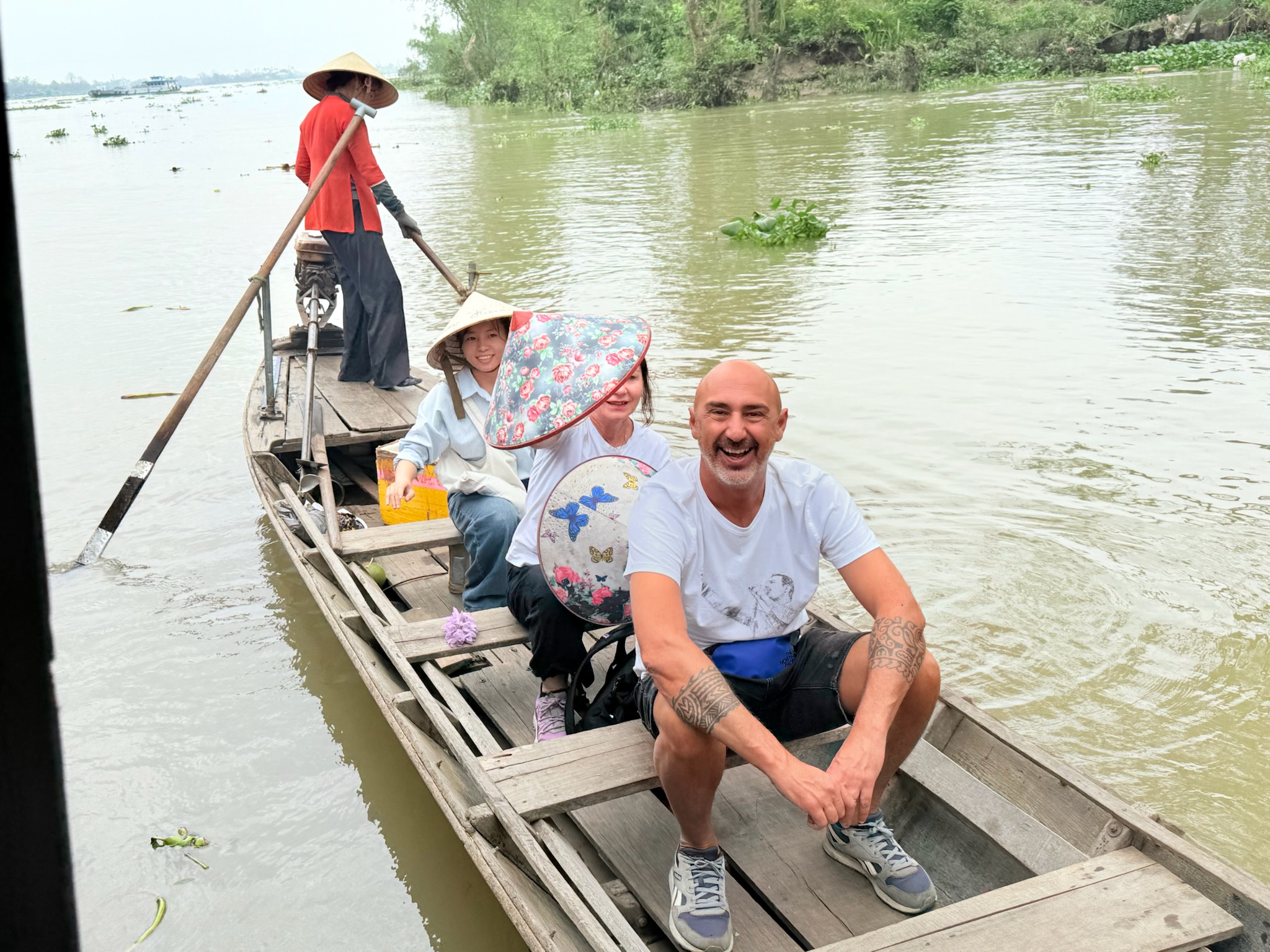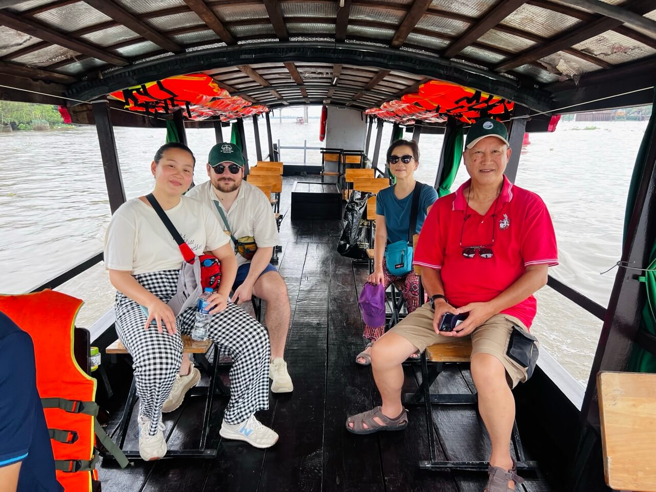 Ngồi trên xuồng máy, chúng ta chiêm ngưỡng vẻ đẹp hùng vĩ của những con sông lớn như sông Tiền, sông Hậu ở một góc độ thật khác. Hai bên bờ sông là những hàng dừa nước xanh mát, những ngôi nhà sàn đơn sơ nép mình dưới bóng dừa. Thi thoảng, bạn sẽ bắt gặp những chiếc ghe chở đầy trái cây, nông sản xuôi ngược trên sông.